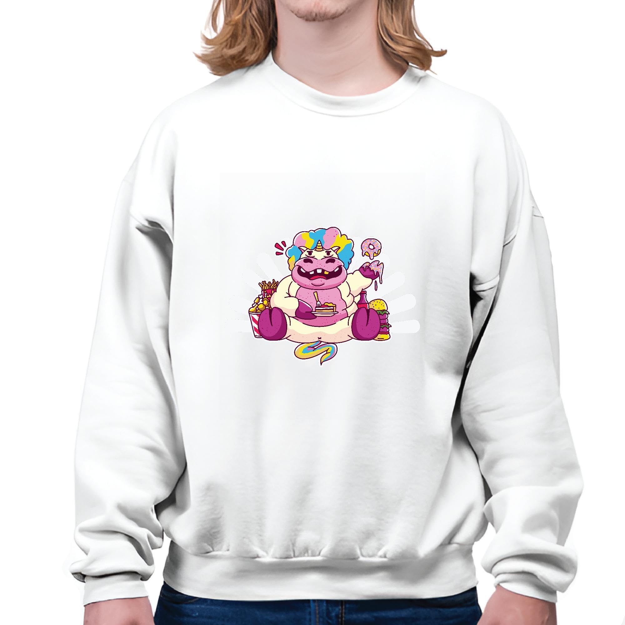 Unique Gift Idea for Unicorn Lovers Fat Unicorn Eating Donuts Cake Sweet Foods Grey White Muticolor Unisex Sweatshirt