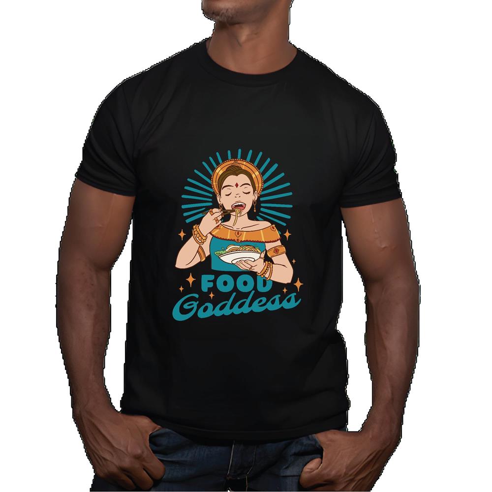 Unique Gift Idea for Women Creative Apsara Girl Eating Food Graphic Design Print Men Women Black Multicolor T shirt