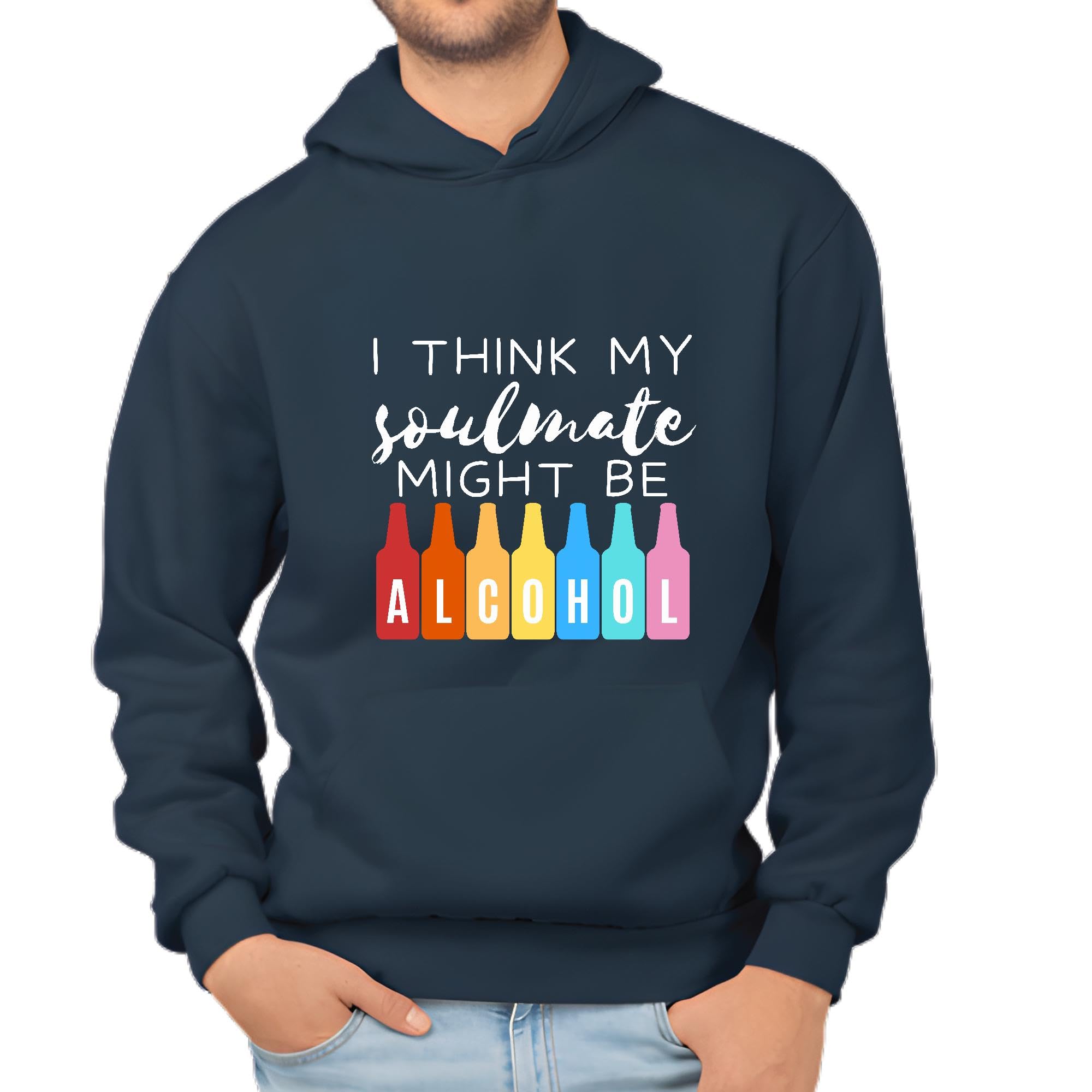 Unique Gift Idea for Wine Beer Tequila Lovers Navy and Muticolor Unisex Hoodie