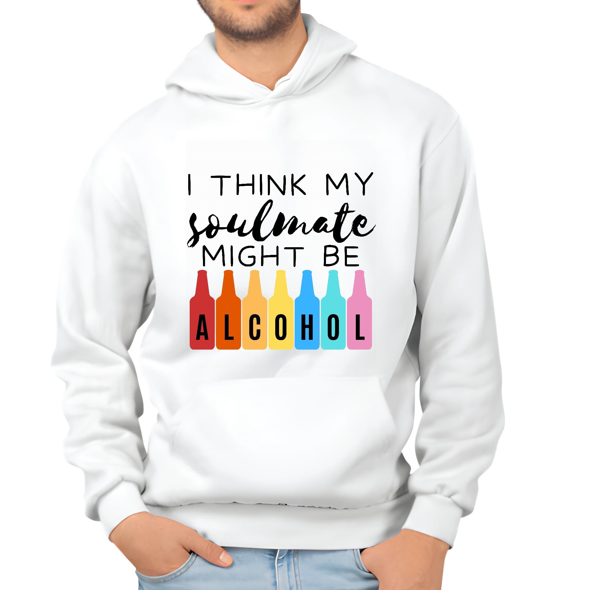 Unique Gift Idea for Wine Beer Tequila Lovers White and Muticolor Unisex Hoodie