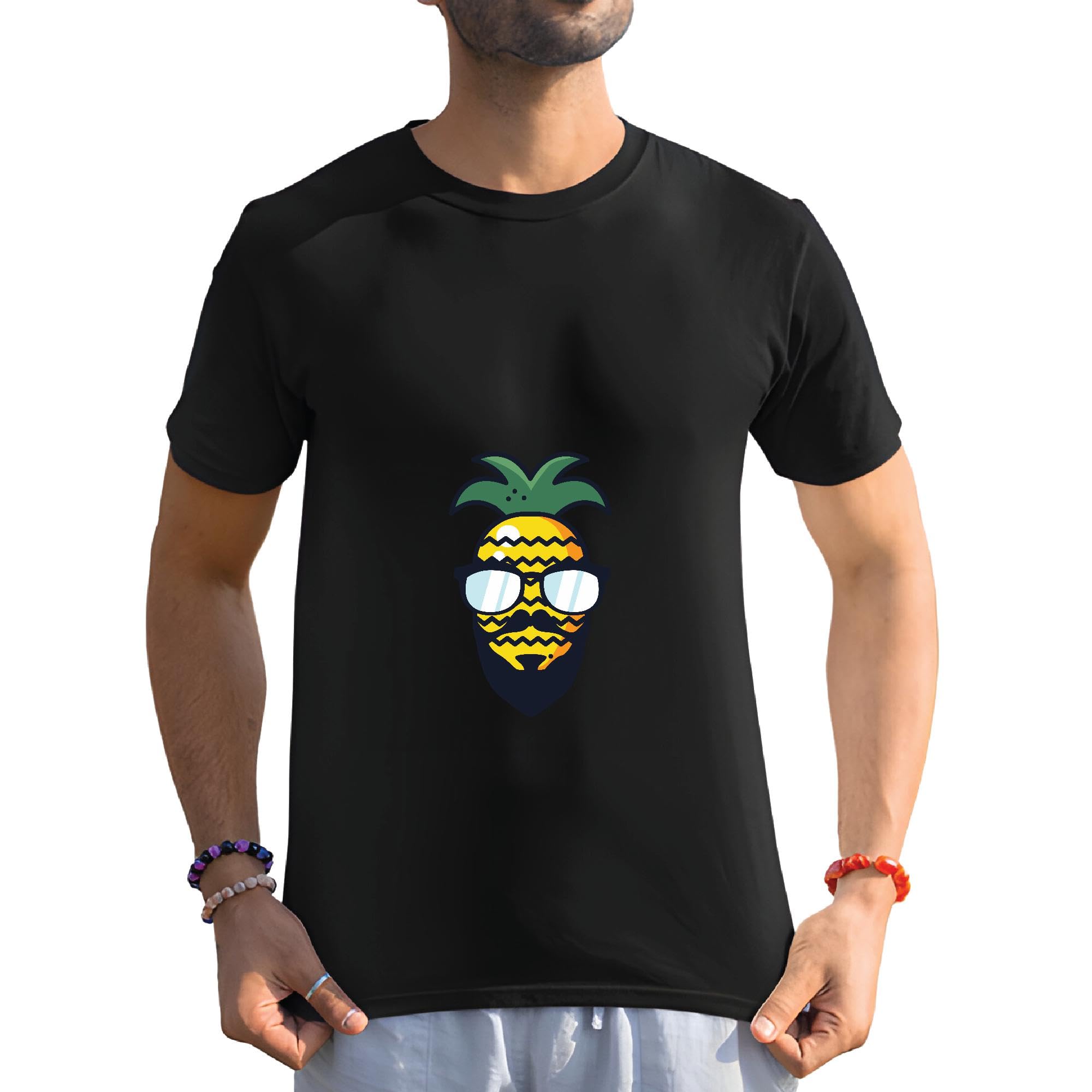 Unique Gift Idea Pineapple with Glasses and Beard for All Ages Men Women Black Multicolor T shirt