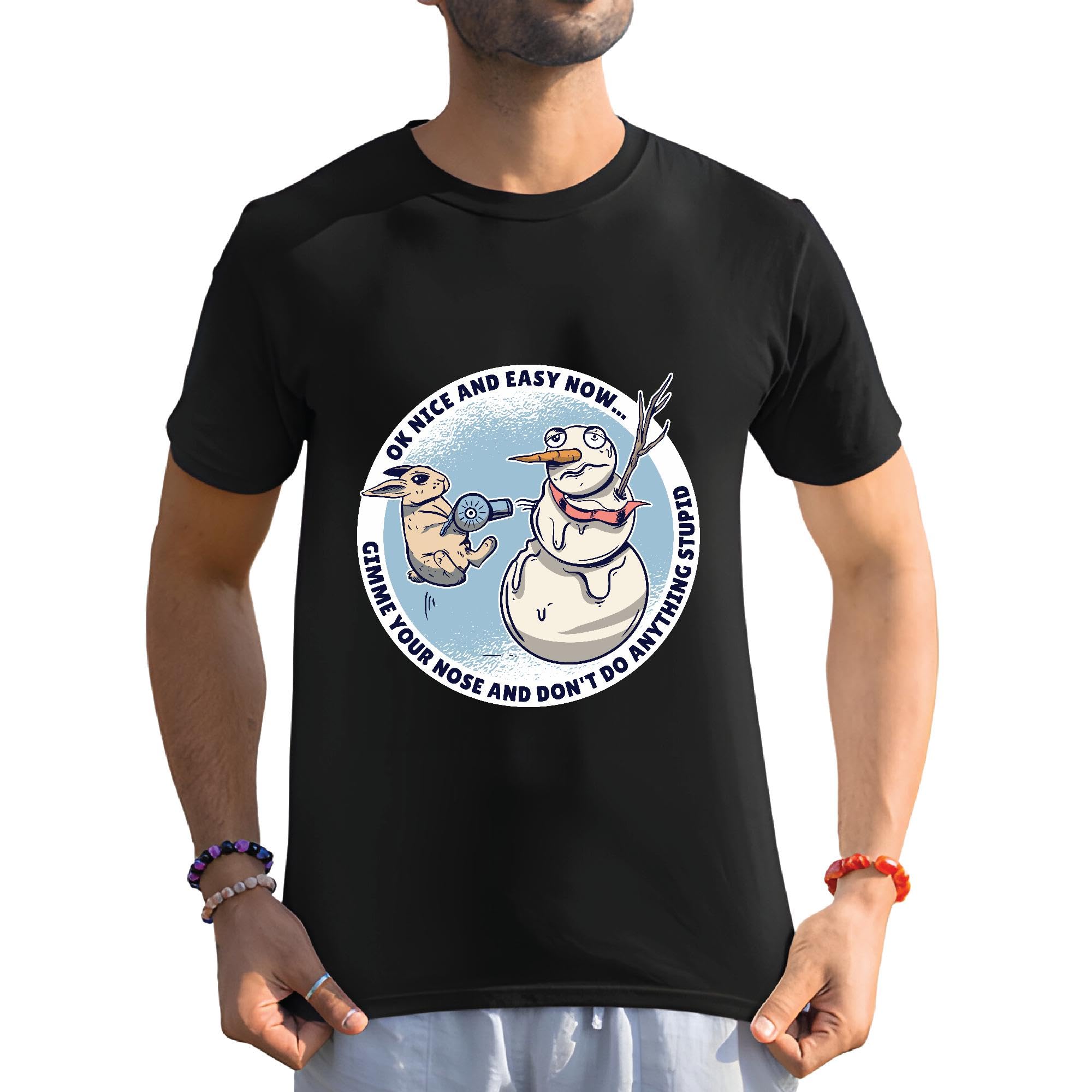 Unique Gift Idea Rabbit Melting a Snowman with a Hair Dryer Snow for Kids and Adults Men Women Black Multicolor T shirt
