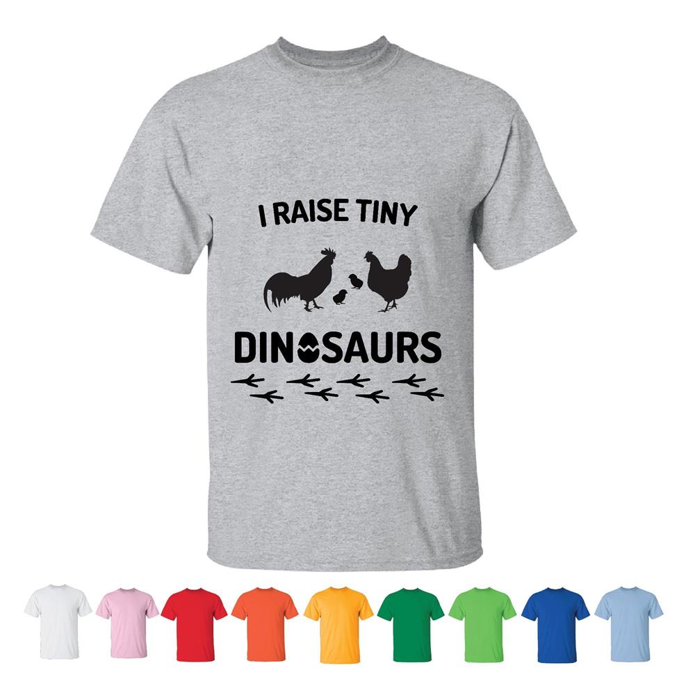 Unique Gift Ideas for Farm Lovers I Raise Tiny Dinosaurs Chickens Farmer Farming Chick Men Women White Gray T shirt