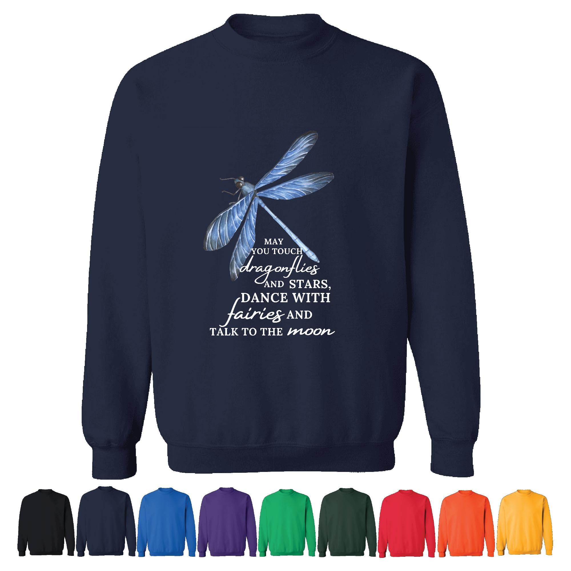 Unique Gift Ideas for Kids Who Love Dragons Fairies and the Moon Navy Muticolor Unisex Sweatshirt