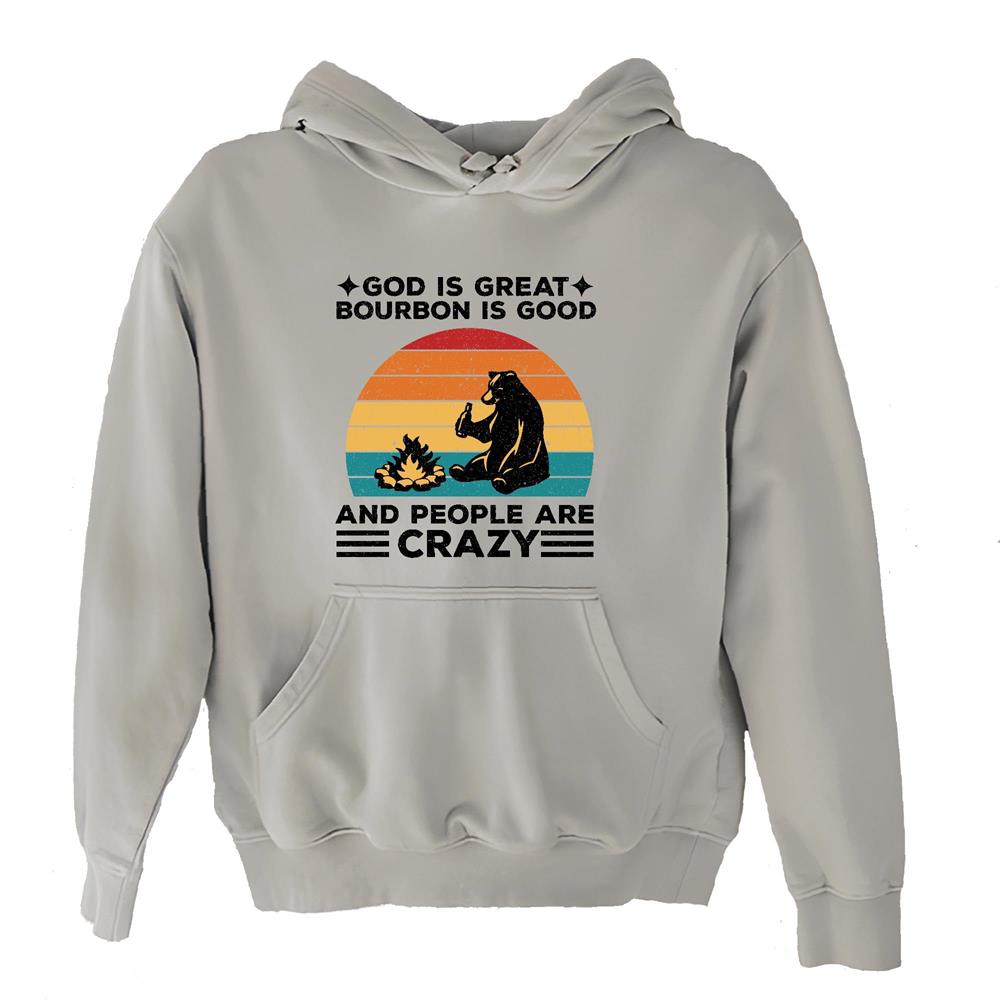 Unique Gifts for Bourbon Lovers – God is Great People are Crazy Gray and Muticolor Unisex Hoodie