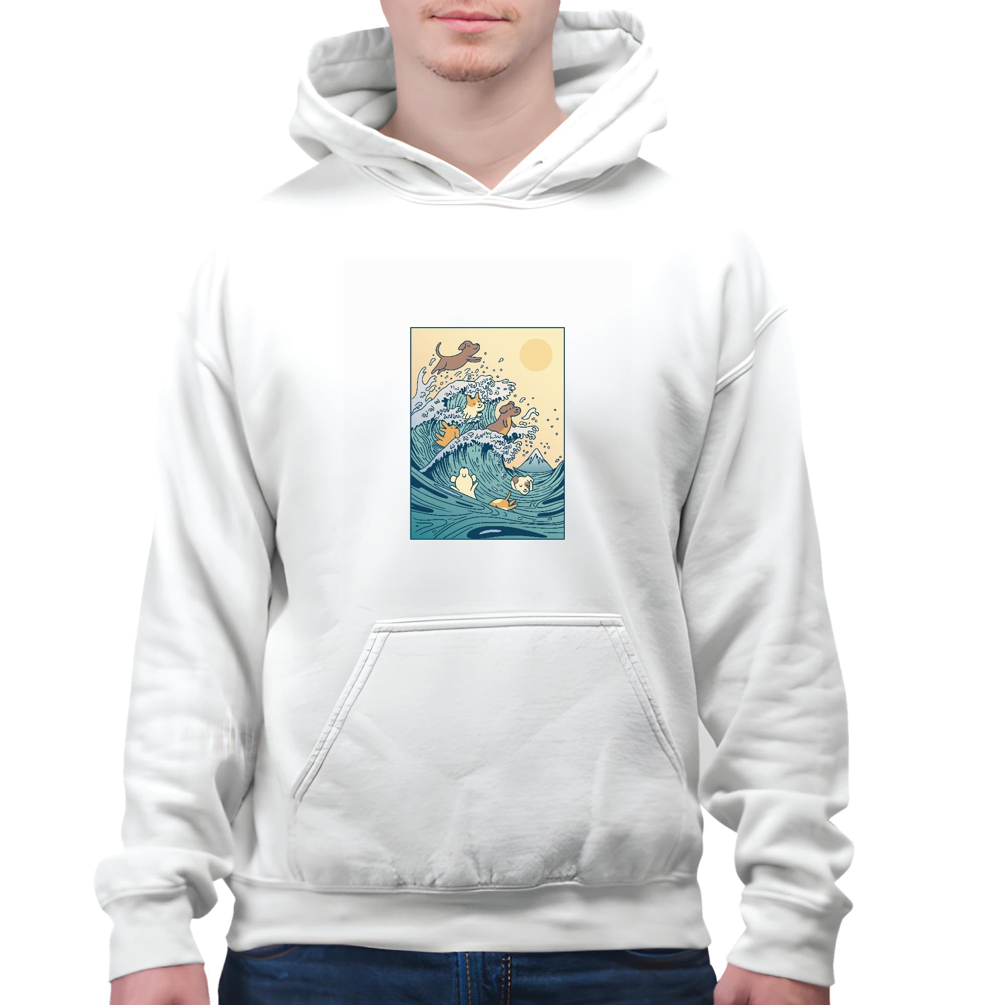 Unique Gifts for Dog Lovers Cute Dogs Swimming Wave Design White and Muticolor Unisex Hoodie