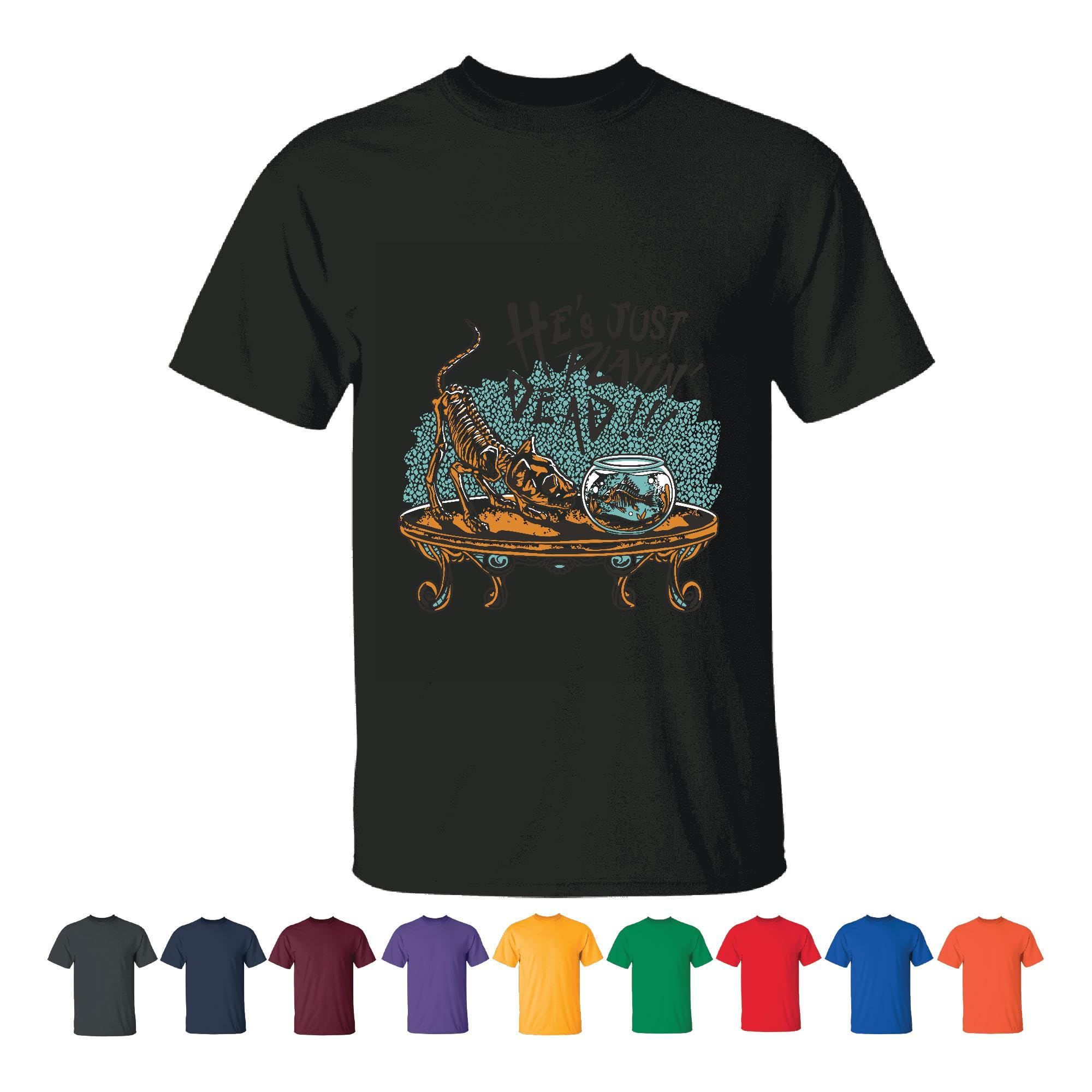 Unique Graphic Design Gift for Cat Fish Lovers He s Just Playing Dead Men Women Black T shirt