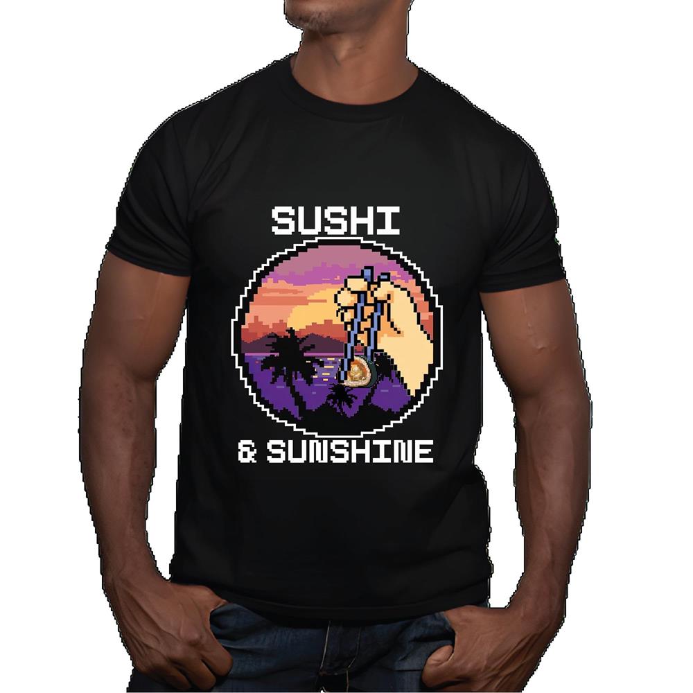 Unique Idea for Sushi and Sunshine Lovers Vintage Retro Graphic Men Women Black Multicolor T shirt