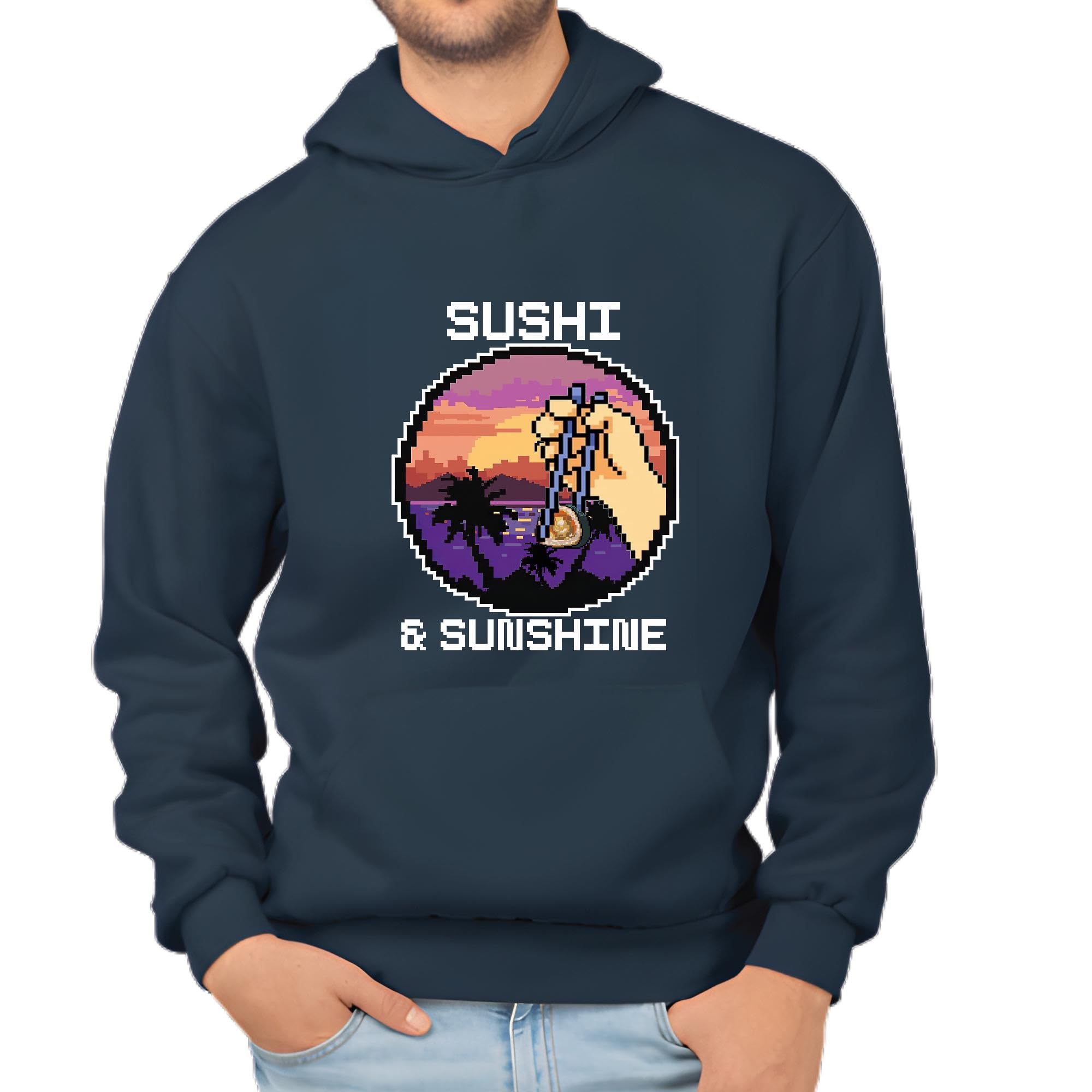 Unique Idea for Sushi and Sunshine Lovers Vintage Retro Graphic Navy and Muticolor Unisex Hoodie
