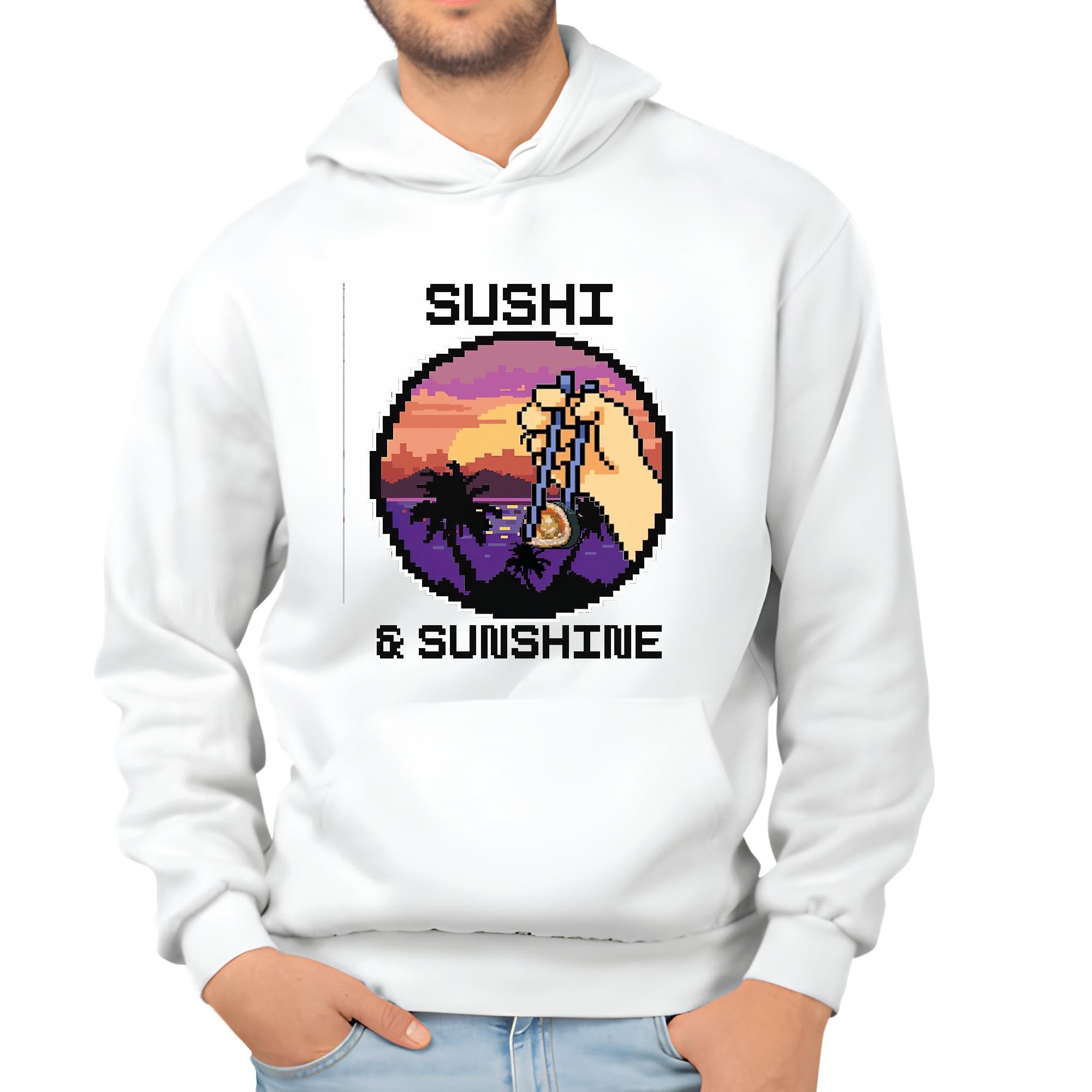 Unique Idea for Sushi and Sunshine Lovers Vintage Retro Graphic White and Muticolor Unisex Hoodie
