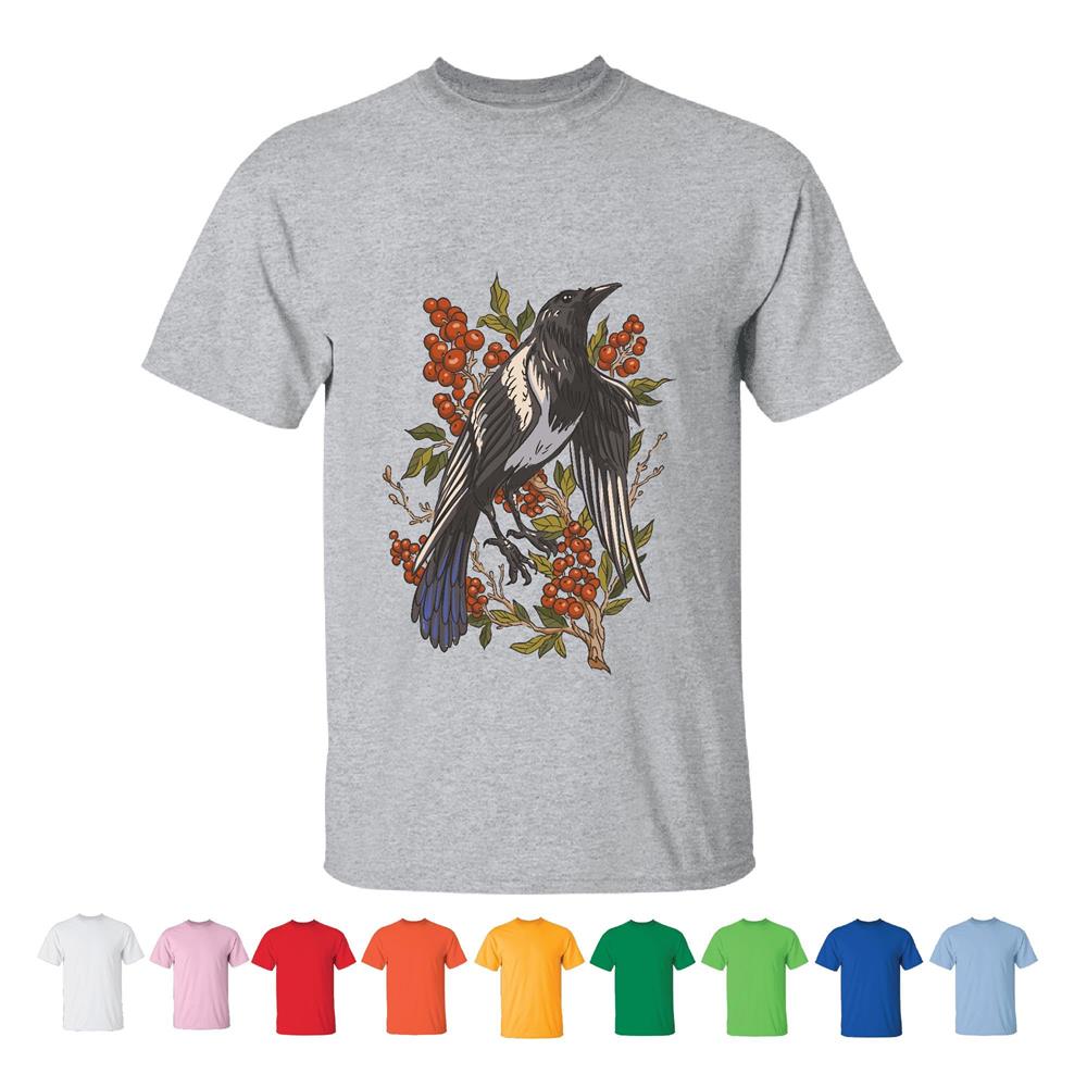 Unique Magpie Bird Gift Ideas for Nature Lovers Cranberry Design Men Women White Gray T shirt