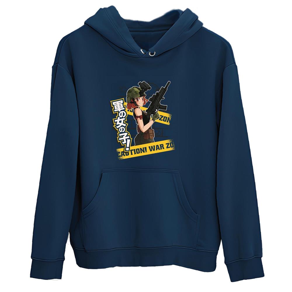 Unique Military Anime Girl Gun Gift Perfect War Quote For Admirers of the Anime Genre Navy and Muticolor Unisex Hoodie