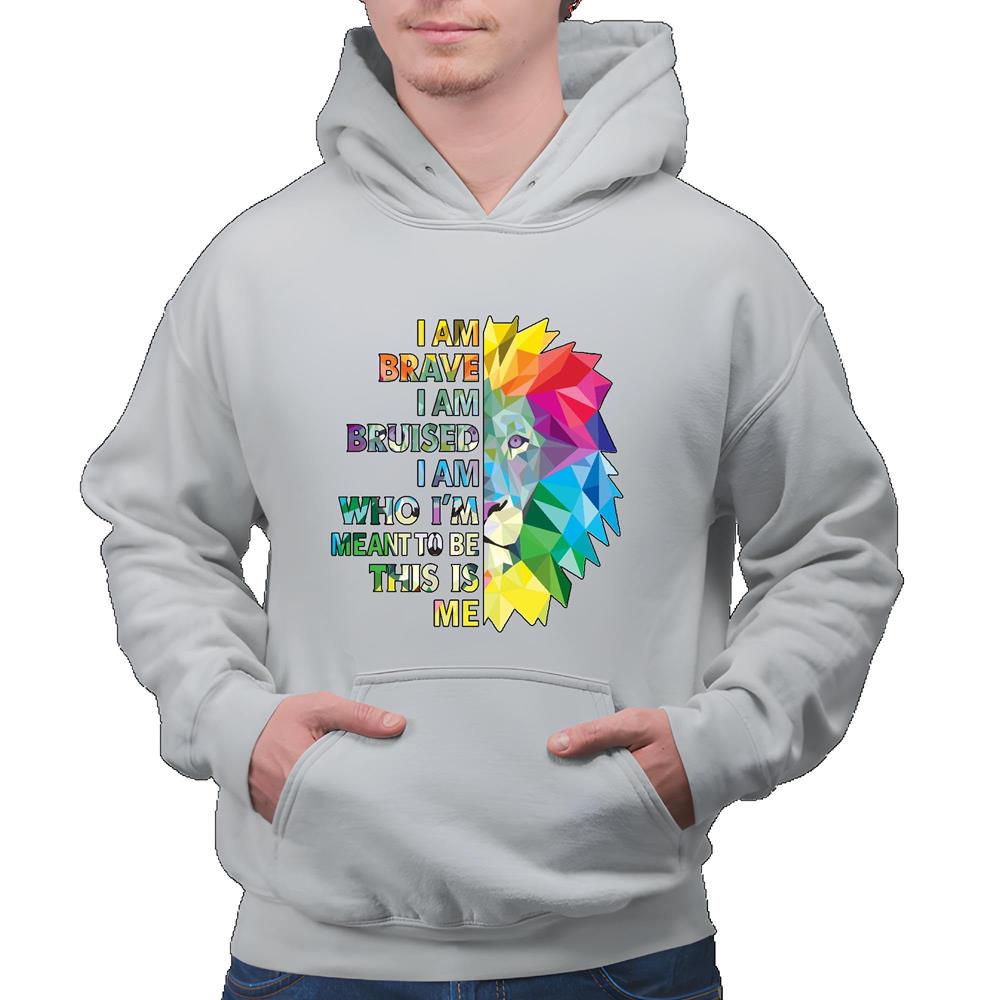 Brave and Beautiful Gift Idea Lion Graphic Gift for Men Women Gray and Muticolor Unisex Hoodie