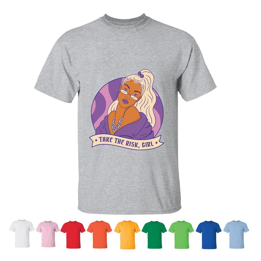 Unique Quote Gift for Empowering Women Take the Risk Girl Men Women White Gray T shirt