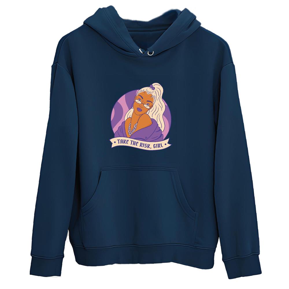 Unique Quote Gift for Empowering Women Take the Risk Girl Navy and Muticolor Unisex Hoodie