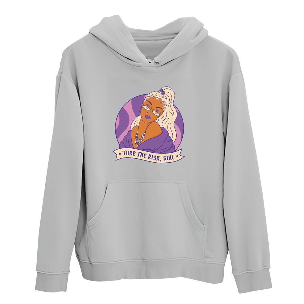 Unique Quote Gift for Empowering Women Take the Risk Girl Gray and Muticolor Unisex Hoodie
