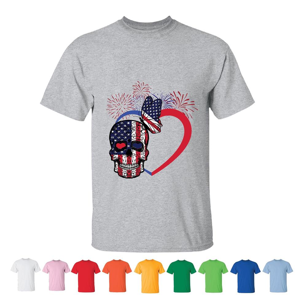Unique Skull Flag Butterfly for Men and Women Men Women White Gray T shirt