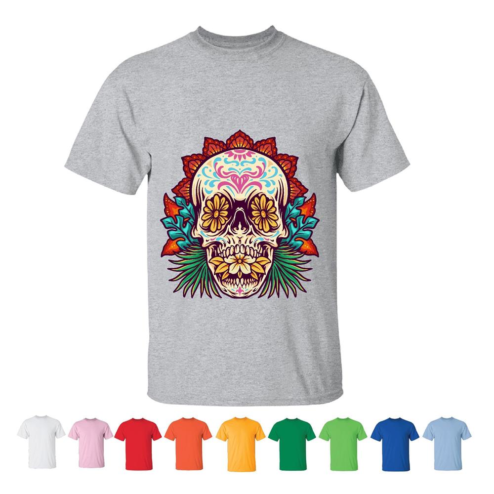 Unique Skull Art Flower Butterfly for Women Men Women White Gray T shirt