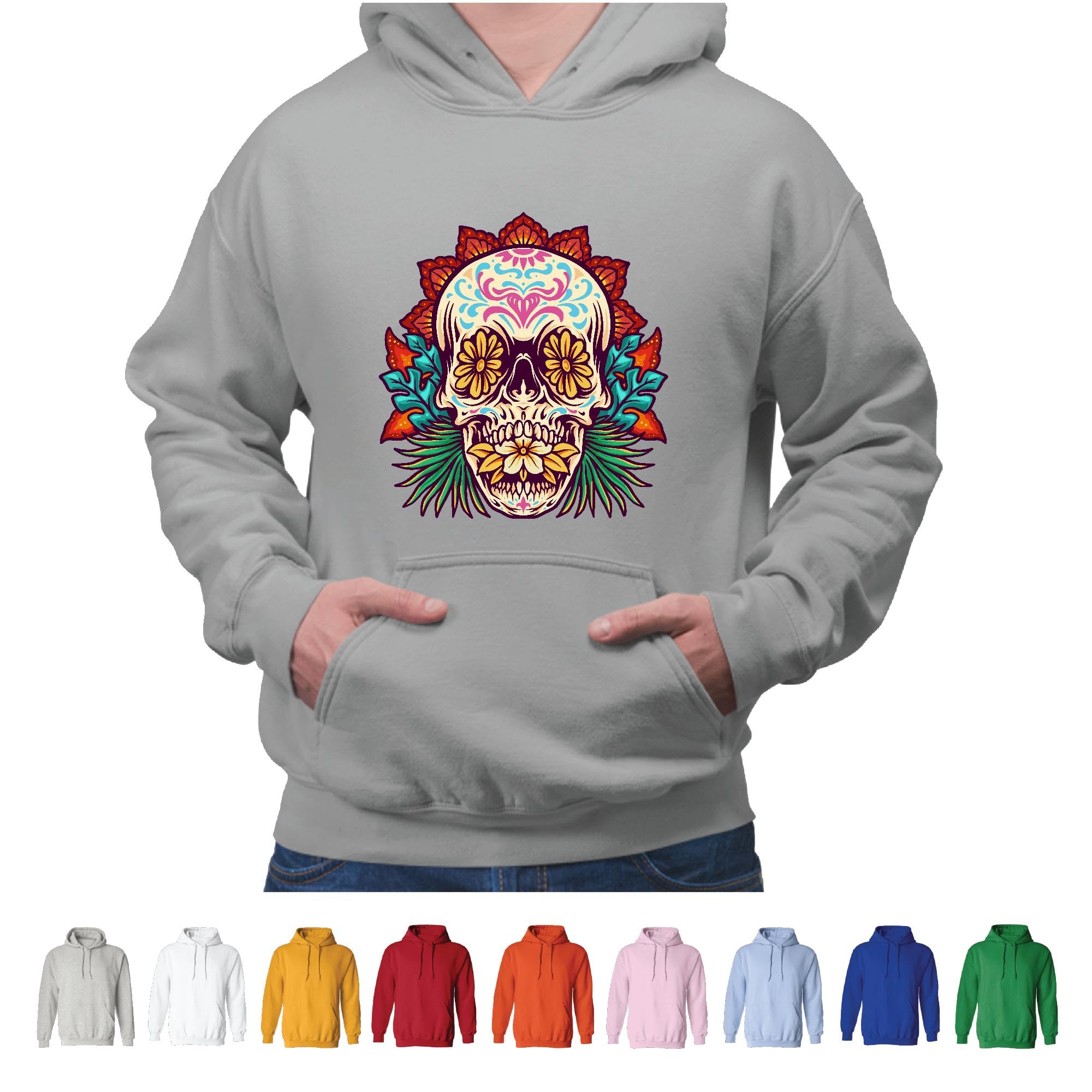 Unique Skull Art Flower Butterfly for Women Gray and Muticolor Unisex Hoodie