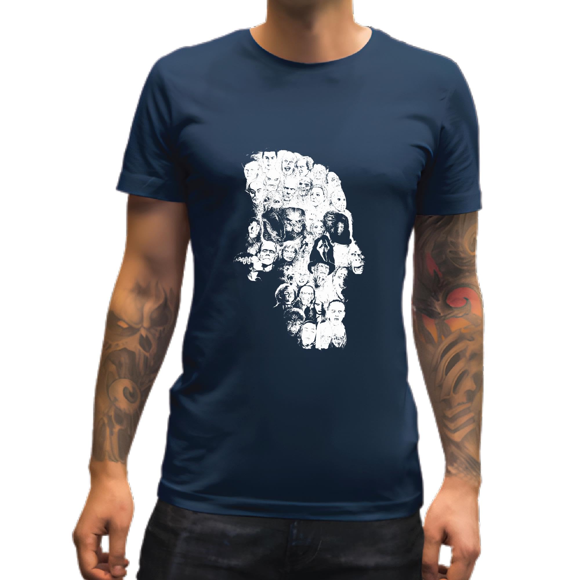 Unique Skull Horror Face Graphic Design Gifts for Horror Fans Men Women Navy Multicolor T shirt