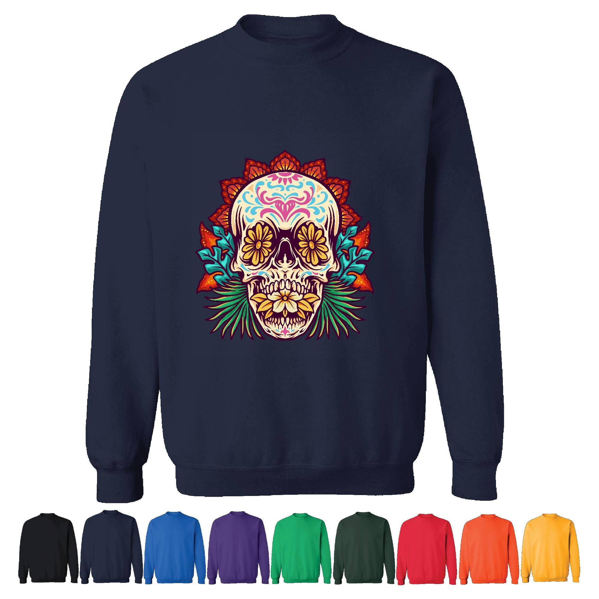 Unique Skull Art Flower Butterfly for Women Navy Muticolor Unisex Sweatshirt