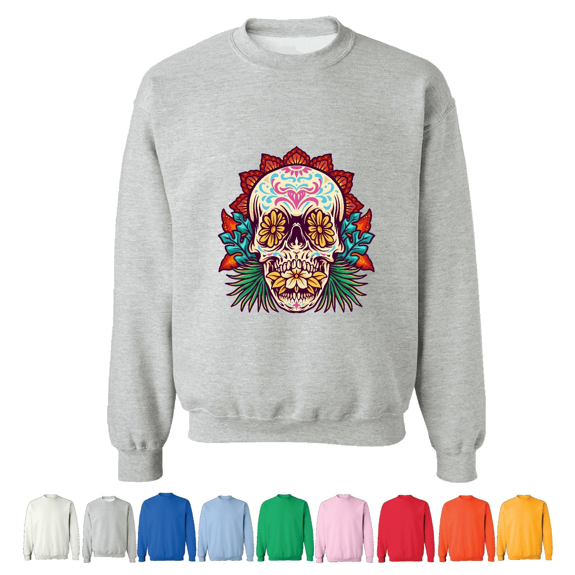 Unique Skull Art Flower Butterfly for Women Grey Muticolor Unisex Sweatshirt