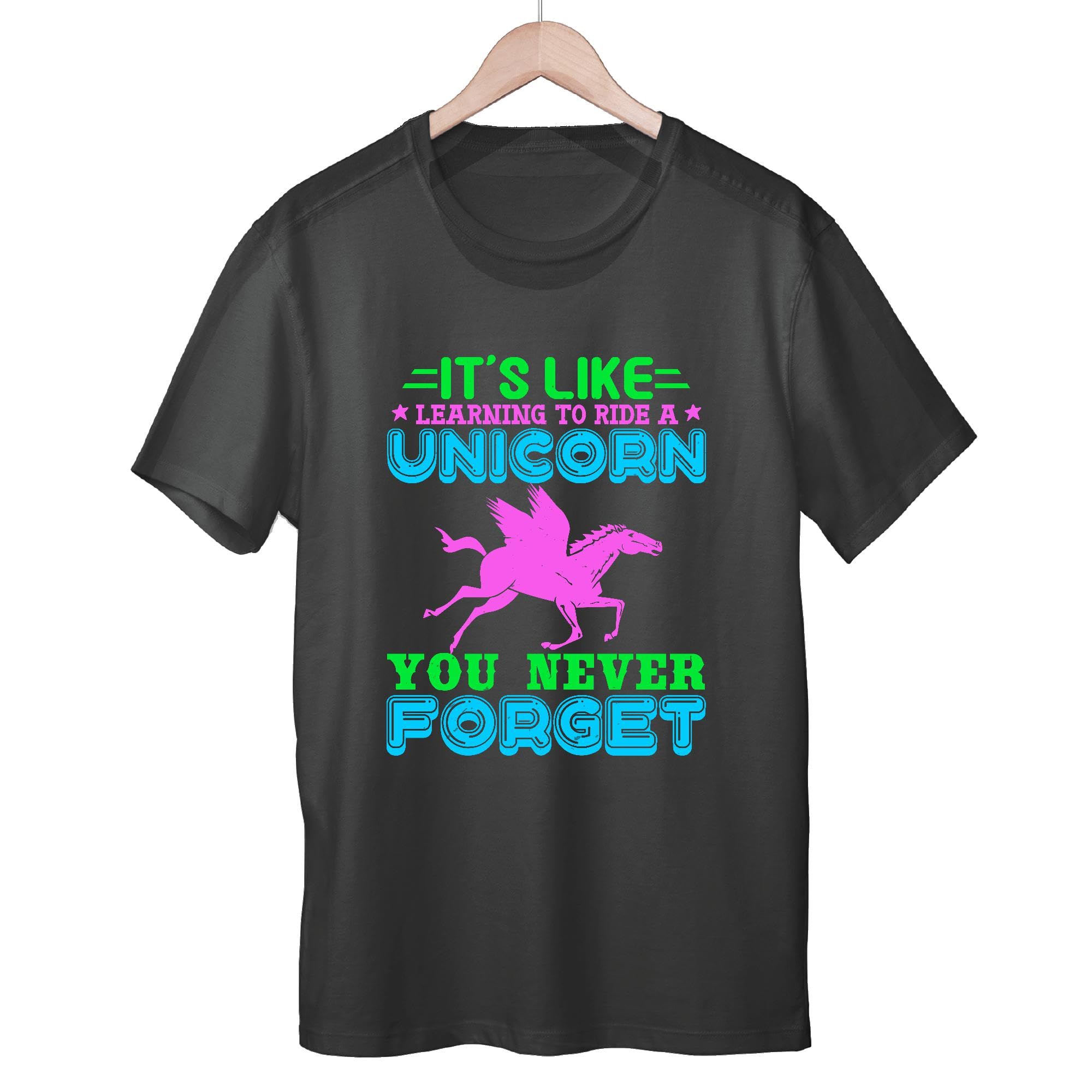 Unique Unicorn Gift for Adults Learning To Ride A Unicorn 18+ Men Women Black Multicolor T shirt