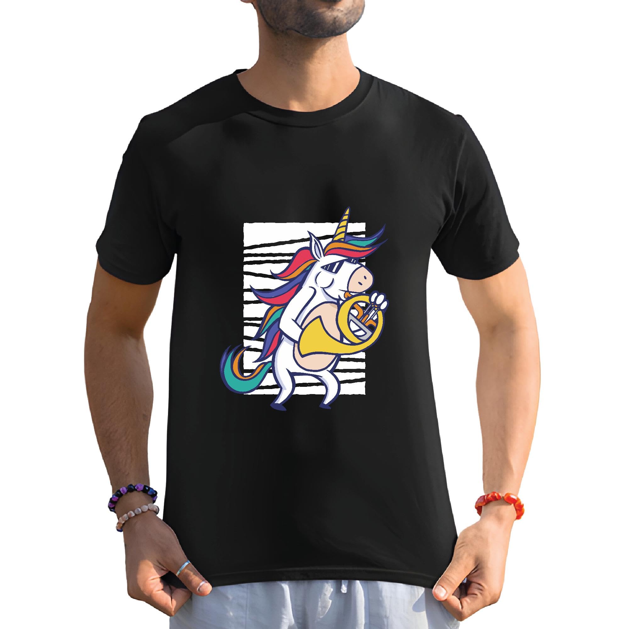 Unique Unicorn Gift for Music Lovers French Horn Playing Unicorn Men Women Black Multicolor T shirt