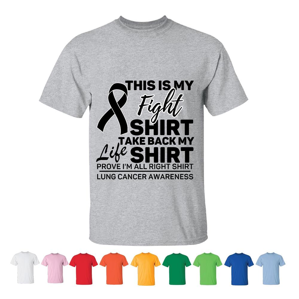 Unisex Fight Shirt for Lung Cancer Awareness Support Ribbon Gift Idea Men Women White Gray T shirt