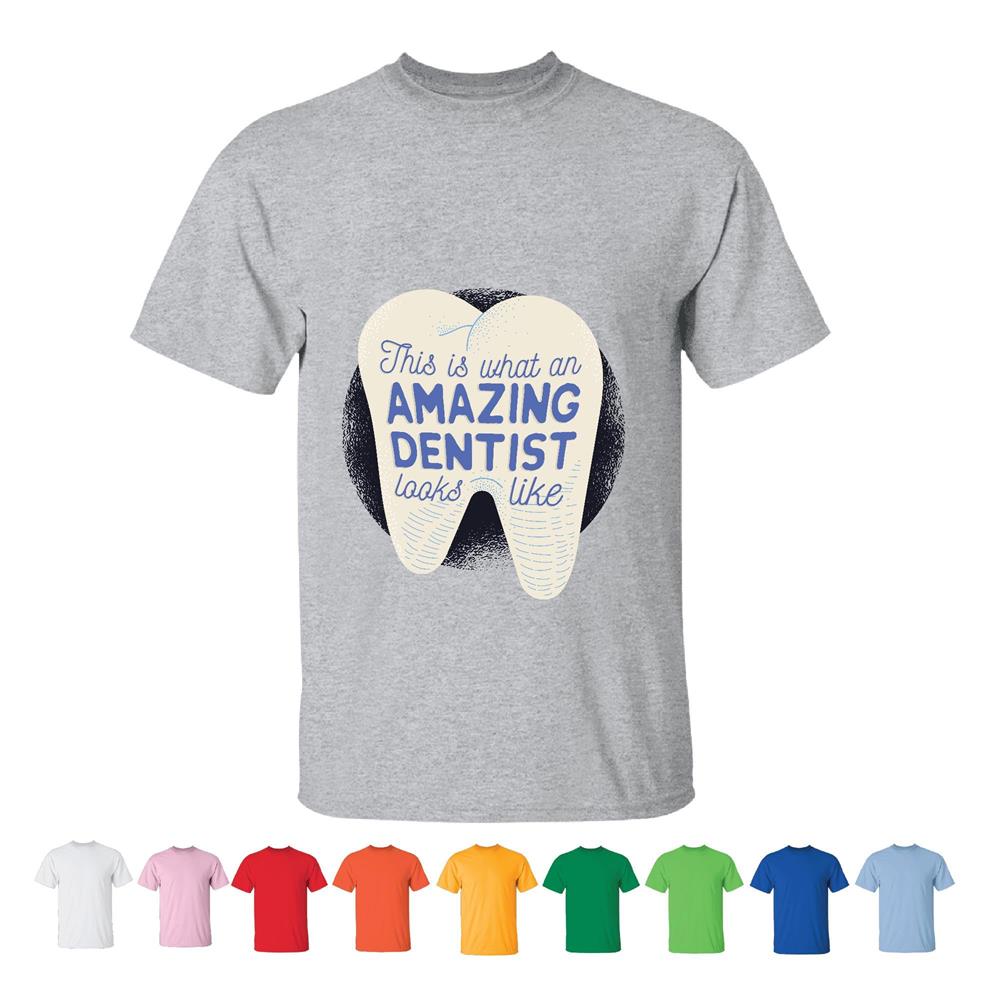 Unisex for Medical Professionals Dentistry Gift Idea with Amazing Dentist Caption Men Women White Gray T shirt