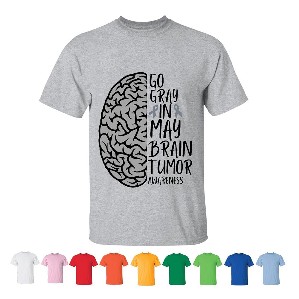 Unisex Gray Brain Tumor Awareness T-Shirt I Go Gray In May Hope for Adults Men Women White Gray T shirt