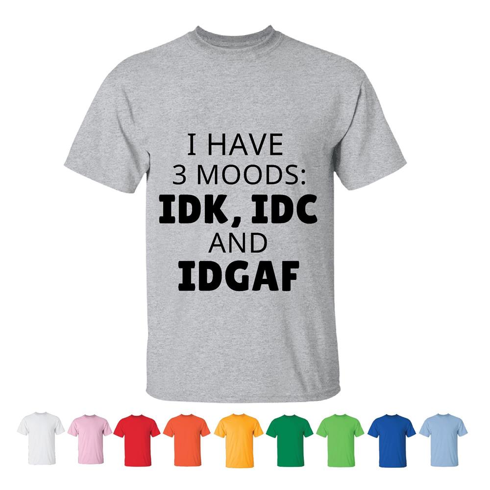 Unisex Humor Funny Saying Warning Shirt IDK IDC IDGAF Perfect Gift for Hippie Friends Men Women White Gray T shirt