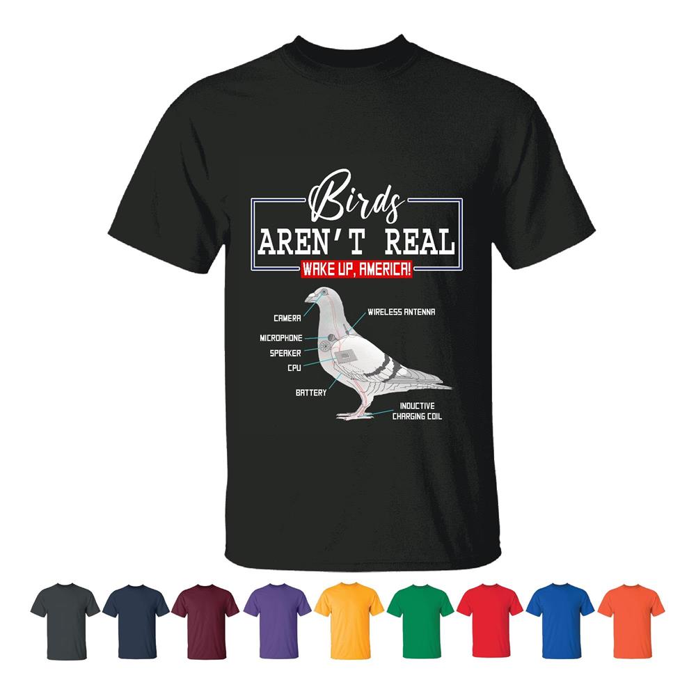 Unisex Strange Graphic Encouraging to Wake Up America – Birds arent Real Men Women White Gray T shirt