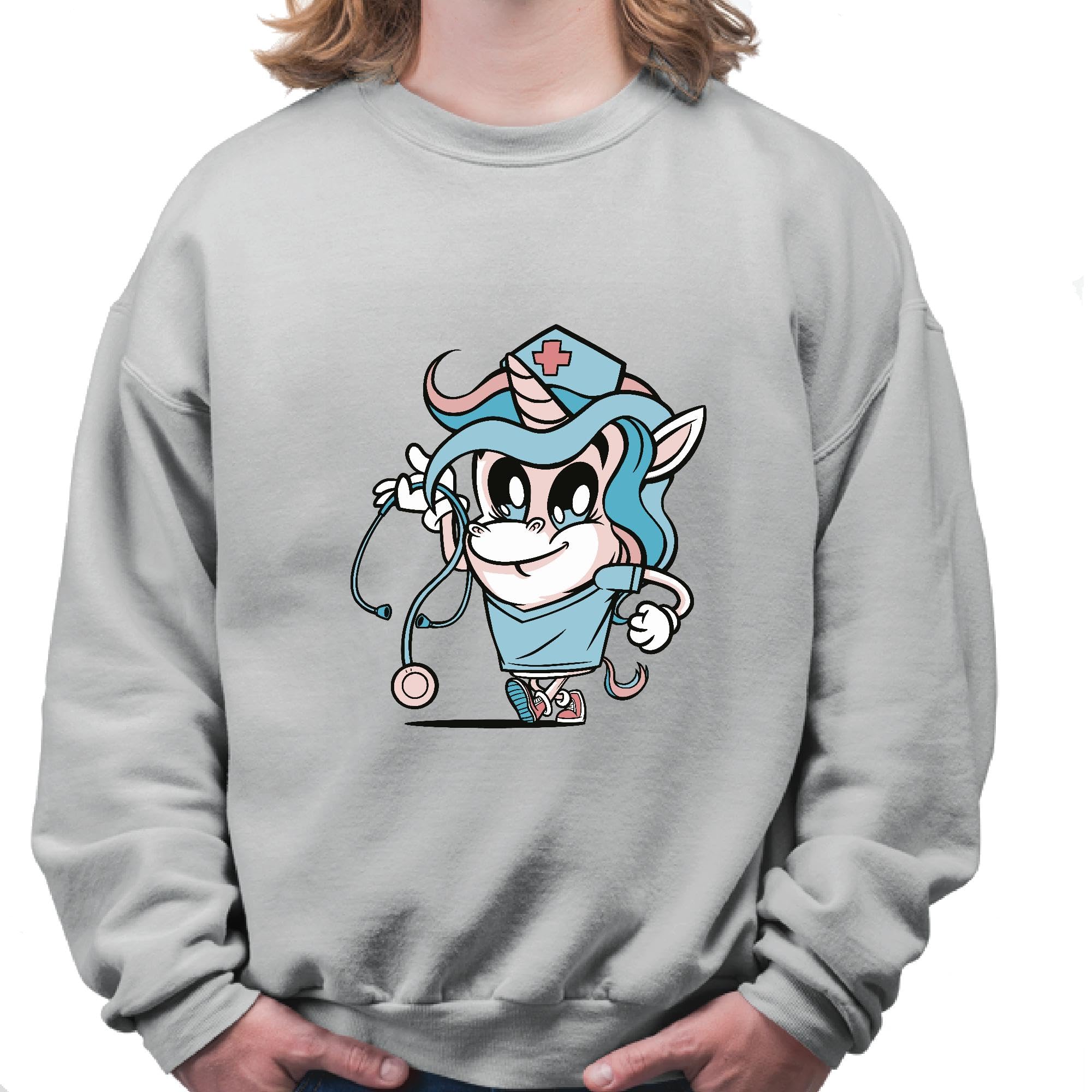 Unisex Unicorn Nurse Design Gift Perfect for Fantasy Lovers Nurses Grey Muticolor Unisex Sweatshirt