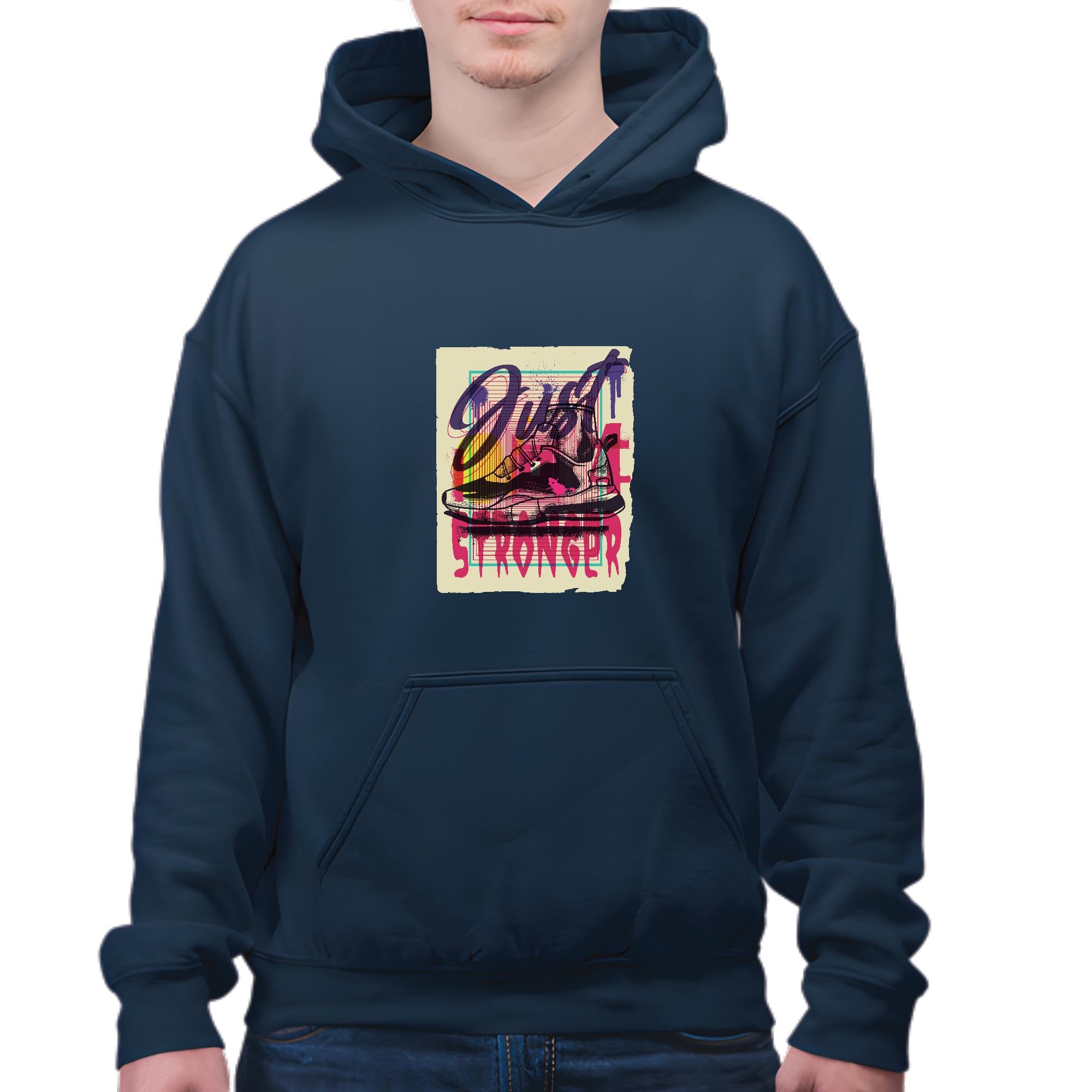 Urban Sports Shoe Gift for Fitness Enthusiasts with Just Stronger Quote Navy and Muticolor Unisex Hoodie