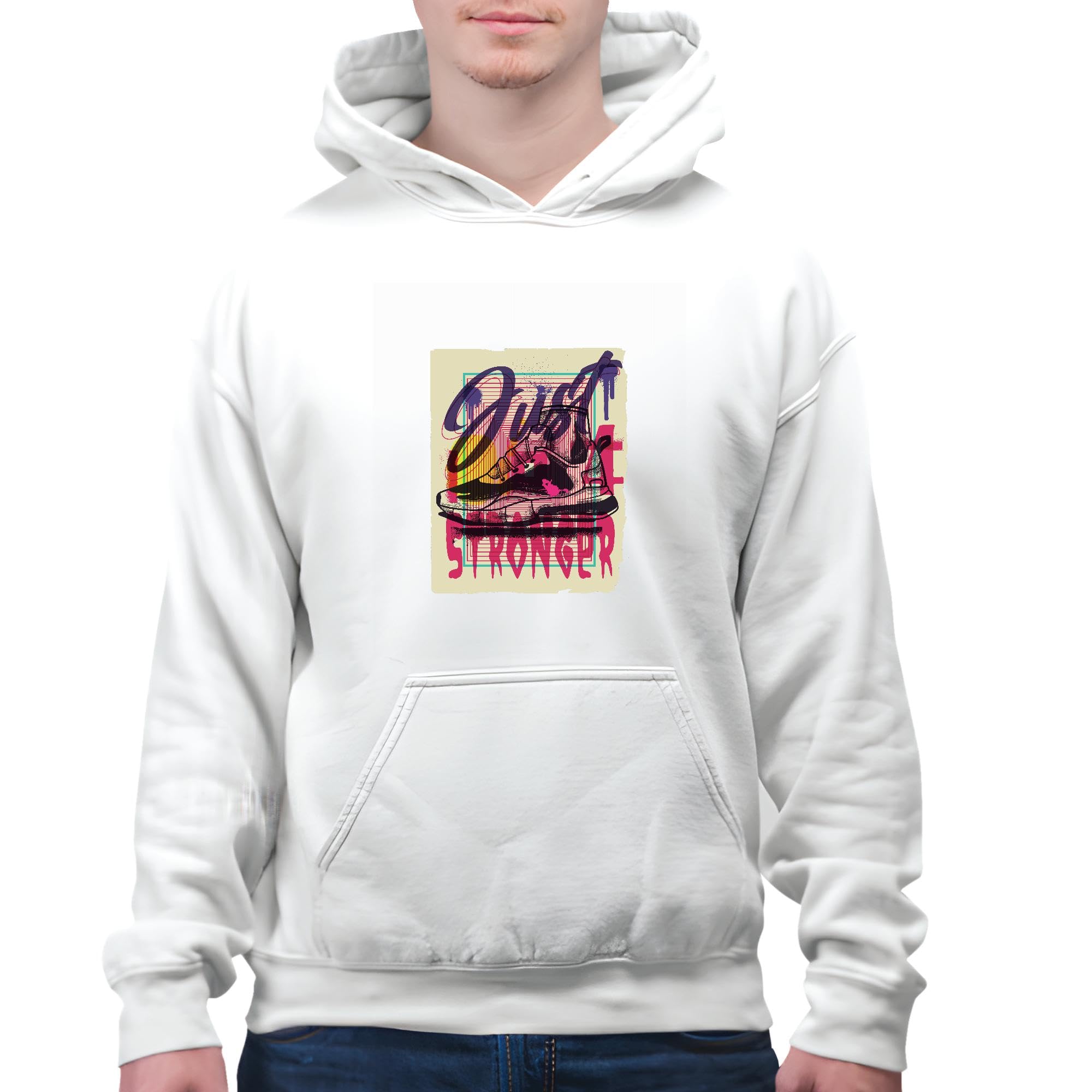Urban Sports Shoe Gift for Fitness Enthusiasts with Just Stronger Quote White and Muticolor Unisex Hoodie