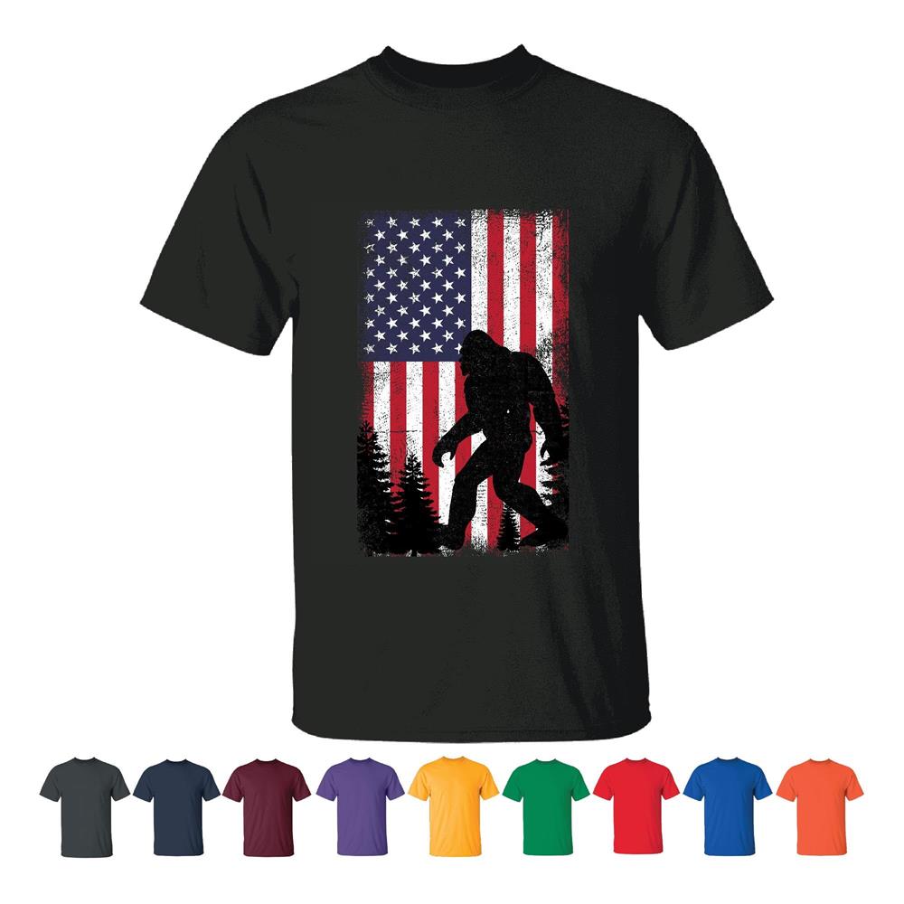 USA Flag Bigfoot Sasquash Graphic Gift for Men Women Kids Men Women Black T shirt