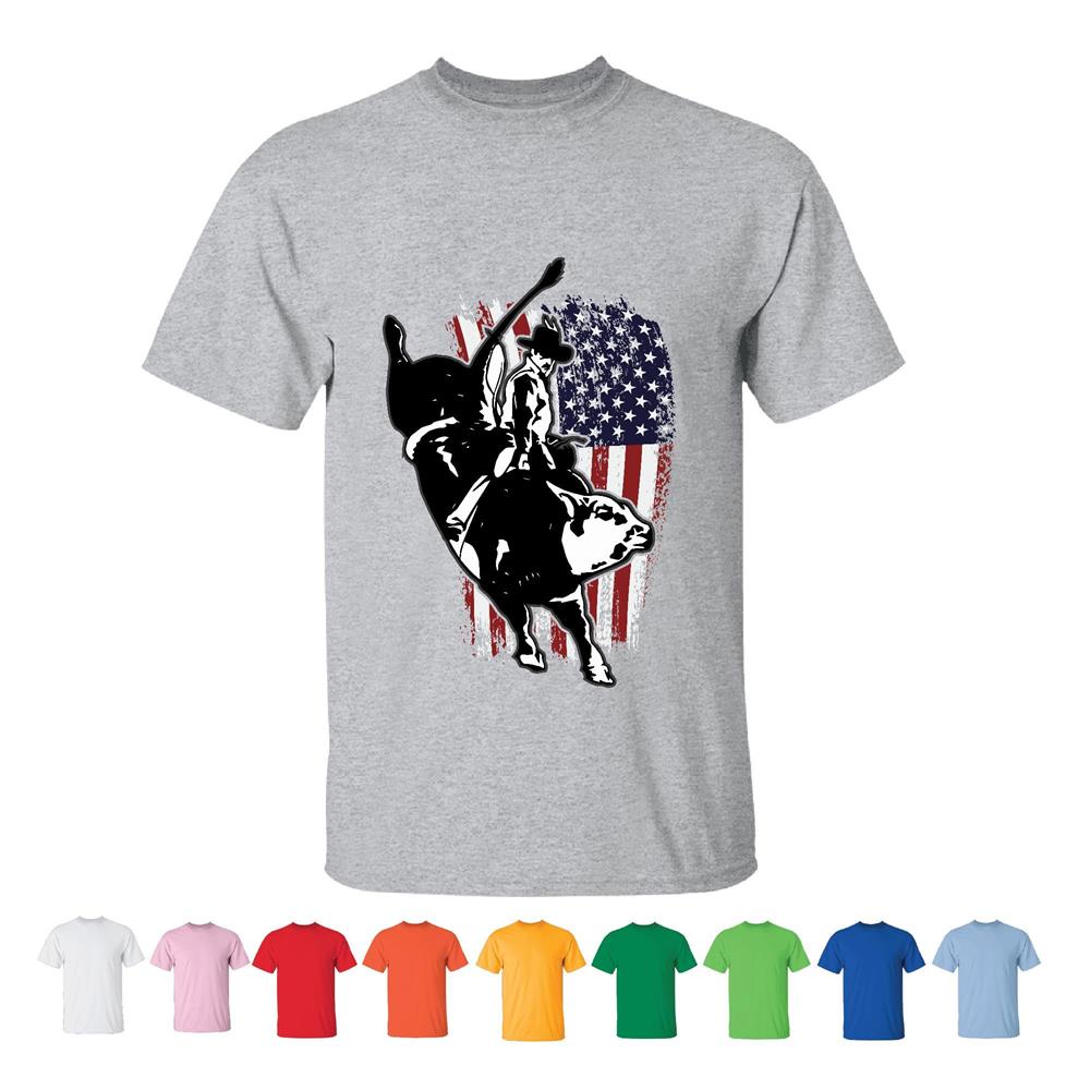 USA Flag Bull Riding Gift for Bull Riding Fans Men Women White Gray T shirt