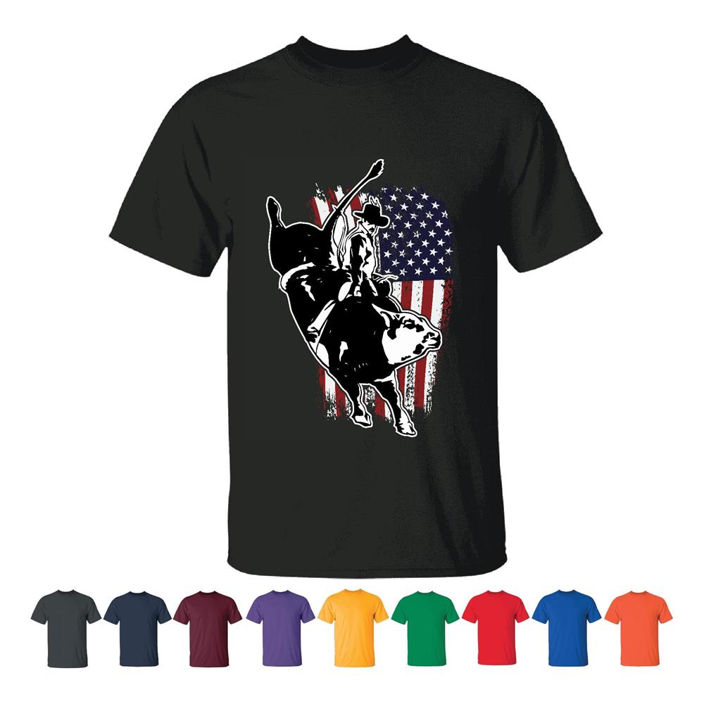 USA Flag Bull Riding Gift for Bull Riding Fans Men Women Black T shirt