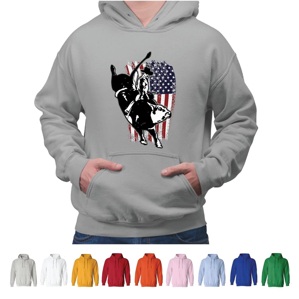 USA Flag Bull Riding Gift for Bull Riding Fans Gray and Muticolor Unisex Hoodie