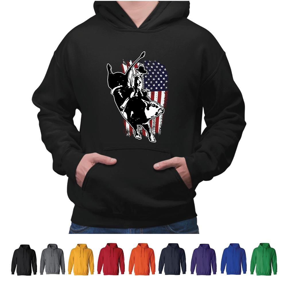 USA Flag Bull Riding Gift for Bull Riding Fans Black and Muticolor Unisex Hoodie