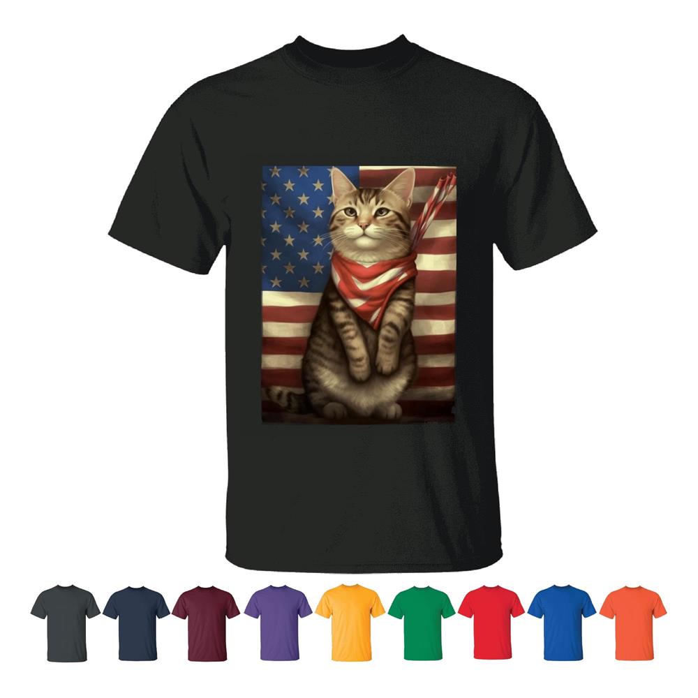 USA Flag Cat Design T shirts for Patriotic Customers Men Women Black T shirt