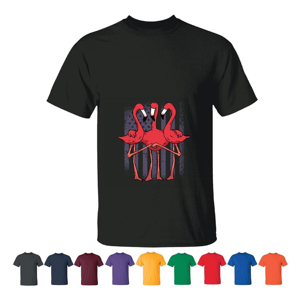 USA Flag Flamingo Hugging Gift for Patriotic Americans Men Women Black T shirt