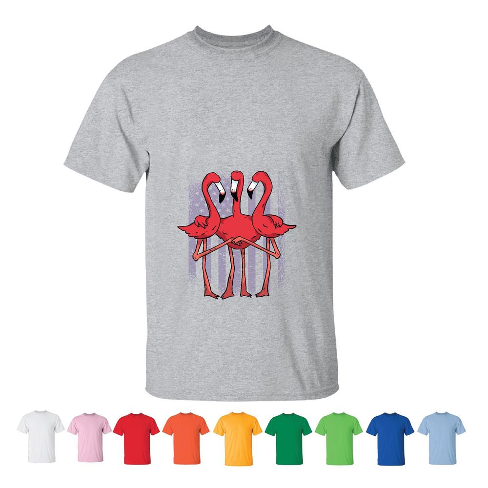 USA Flag Flamingo Hugging Gift for Patriotic Americans Men Women White Gray T shirt