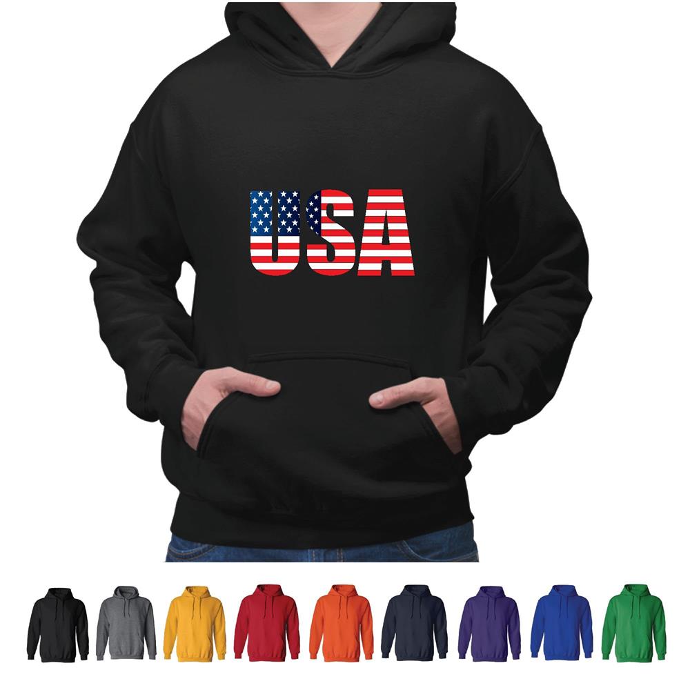 USA Flag for Patriotic Americans Black and Muticolor Unisex Hoodie