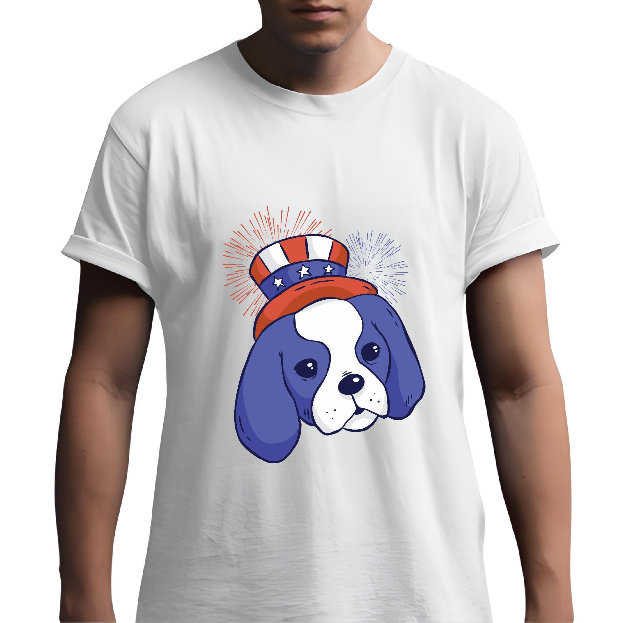 USA Flag Fireworks Dog Gift for Patriotic Pet Lovers Kids Adults Men Women White Gray Multicolor T shirt