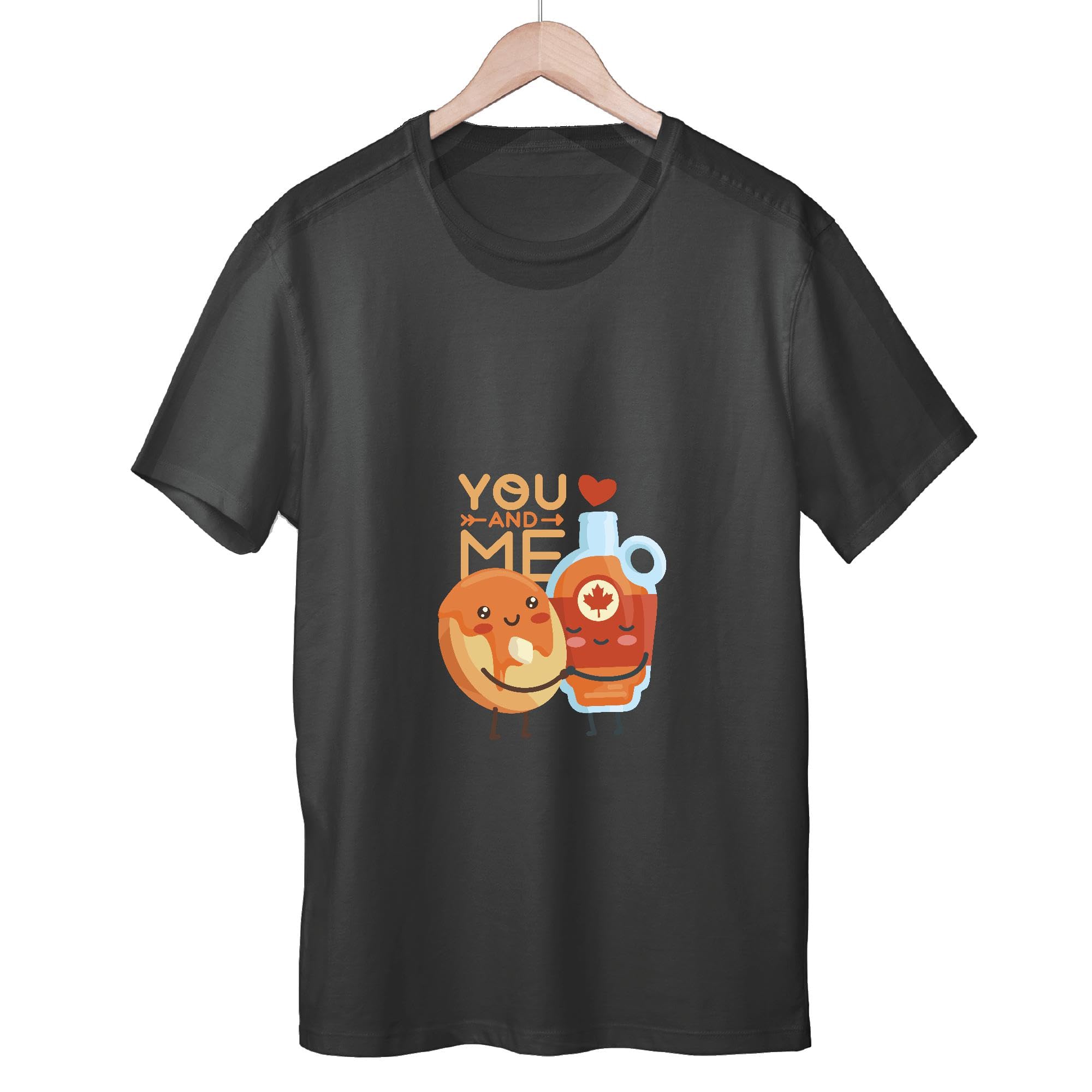 Valentine Gift for Couples Cute Cartoon Pancake Hugging Maple Syrup with Quote for Lovers Men Women Black Multicolor T shirt