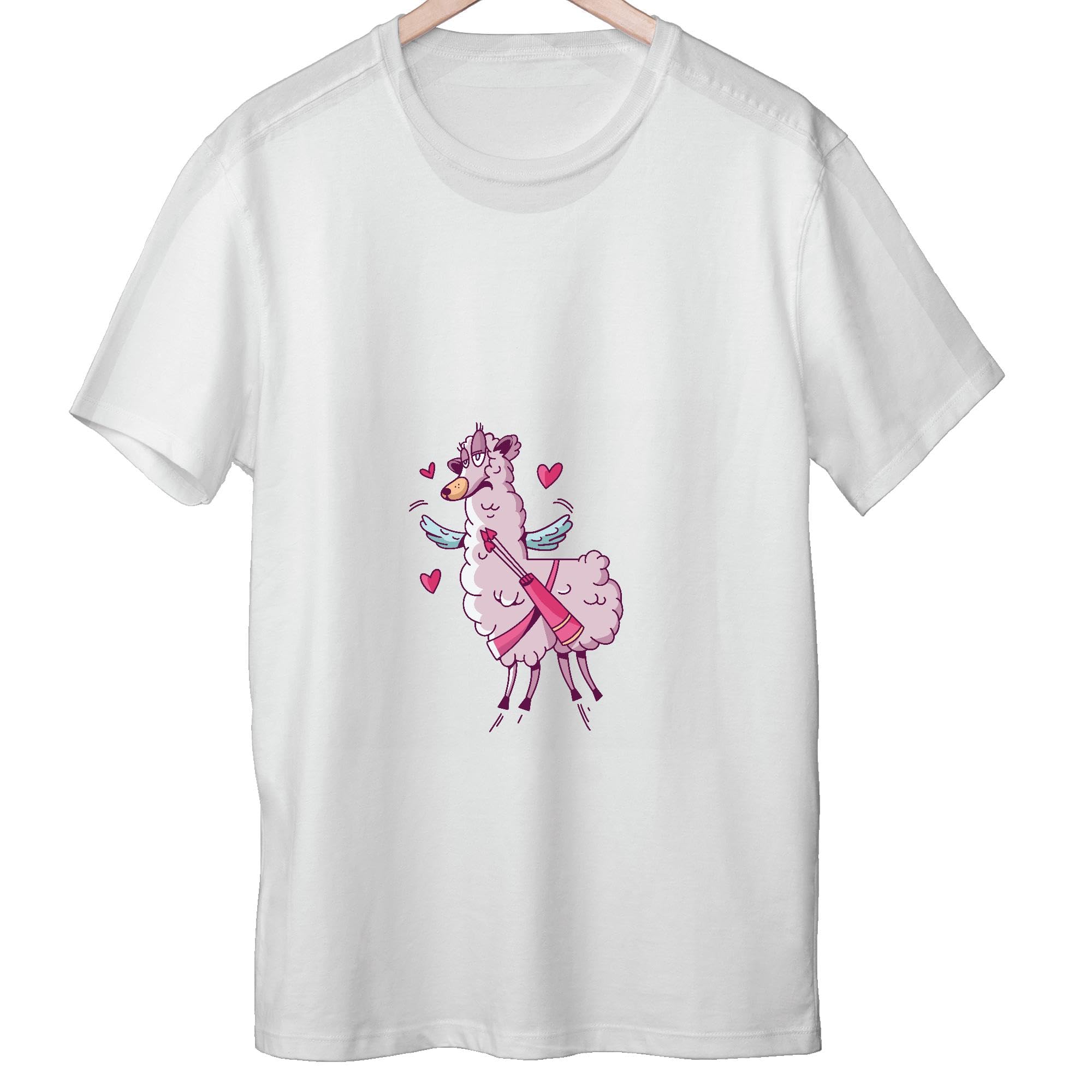 Valentine Gift for Kids Cute Winged Llama with Hearts for Kids Men Women White Gray Multicolor T shirt