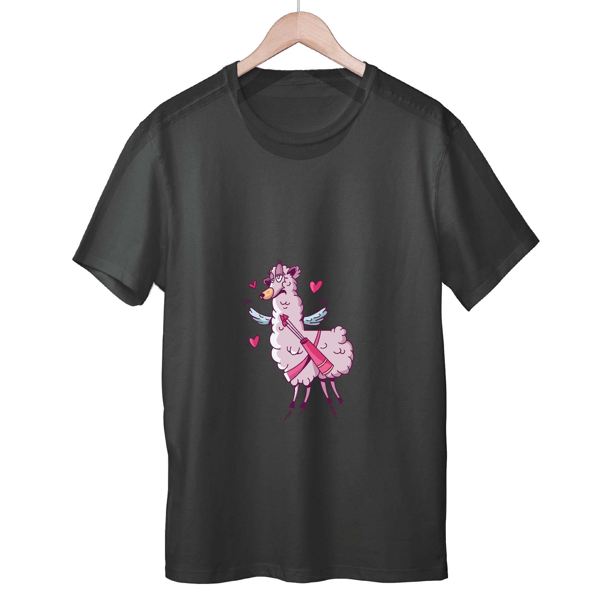Valentine Gift for Kids Cute Winged Llama with Hearts for Kids Men Women Black Multicolor T shirt