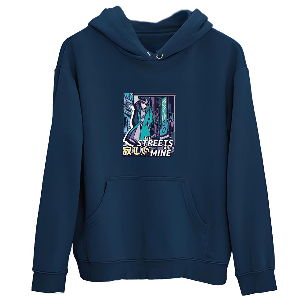Vaporwave Anime Manga Gift for Anime Fans Girl Walking at Night Design Navy and Muticolor Unisex Hoodie